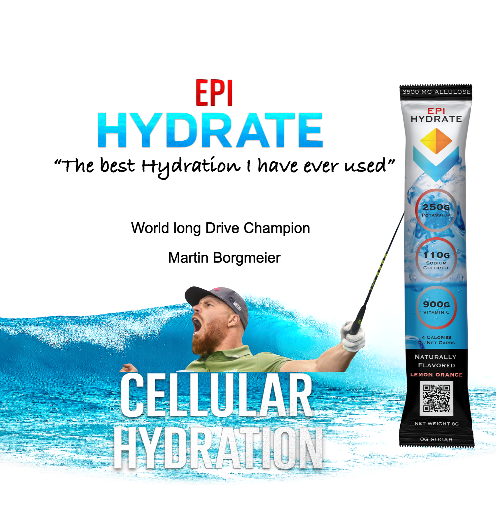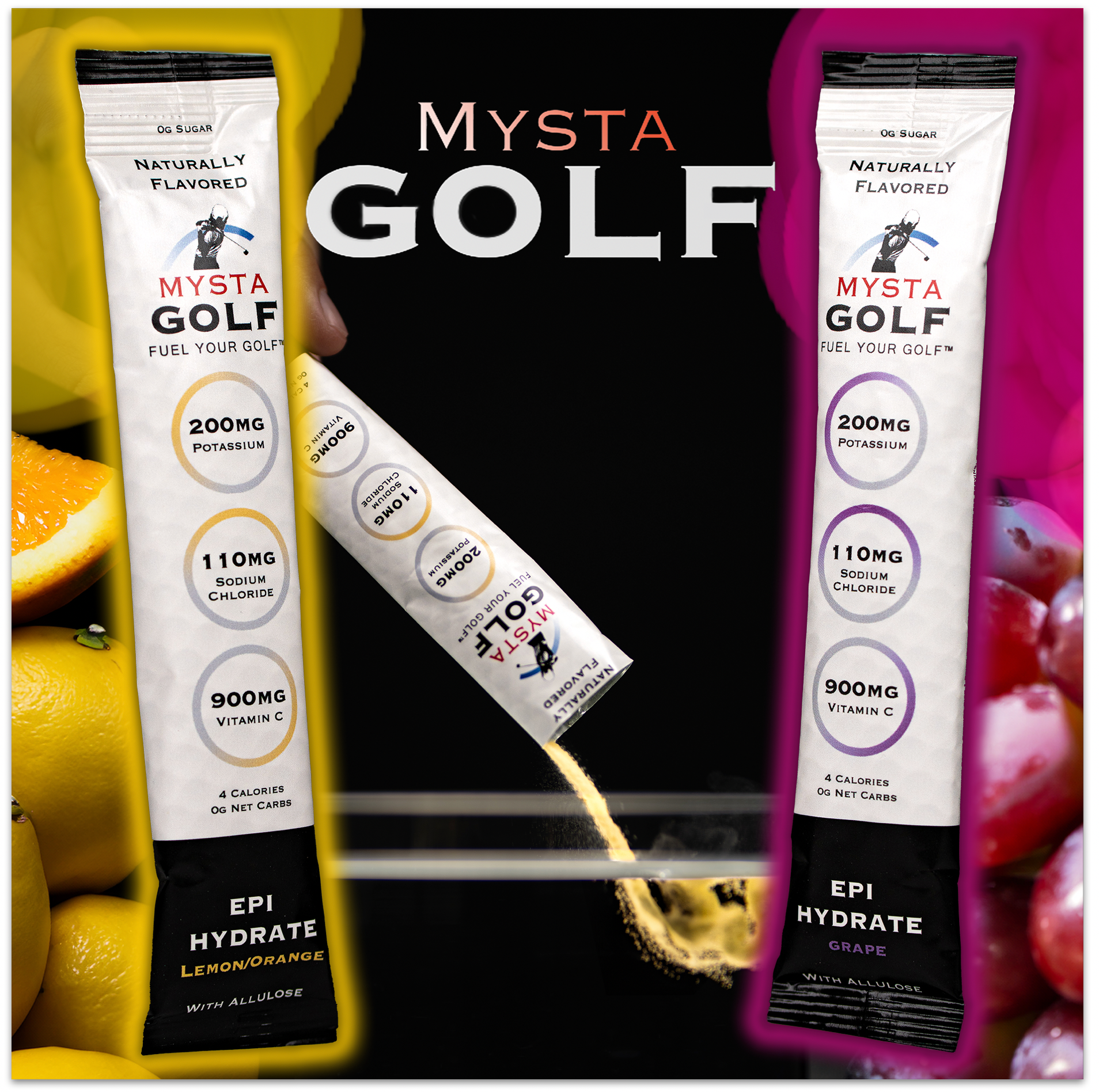 MystaGOLF Epi-Hydrate into any beverage, sports bottle, or mix with water and place in an ice rack to make into popsicles. This product has a delicious natural lemon-orange flavor and gets its sweetness from stevia.